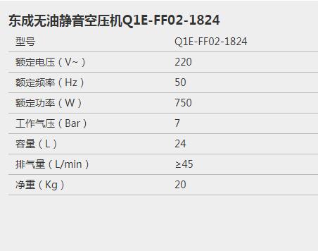 產(chǎn)品名字:東成無油靜音空壓機(jī)Q1E-FF02-1824